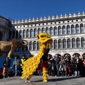 当日,作为意大利威尼斯狂欢节的一部分,一场汉服巡游活动在威尼斯圣马可广场上演。22名从意大利选拔的志愿者身着由中国苏州丝绸博物馆提供的汉服,向威尼斯市民和世界各地游客演绎东方美学。