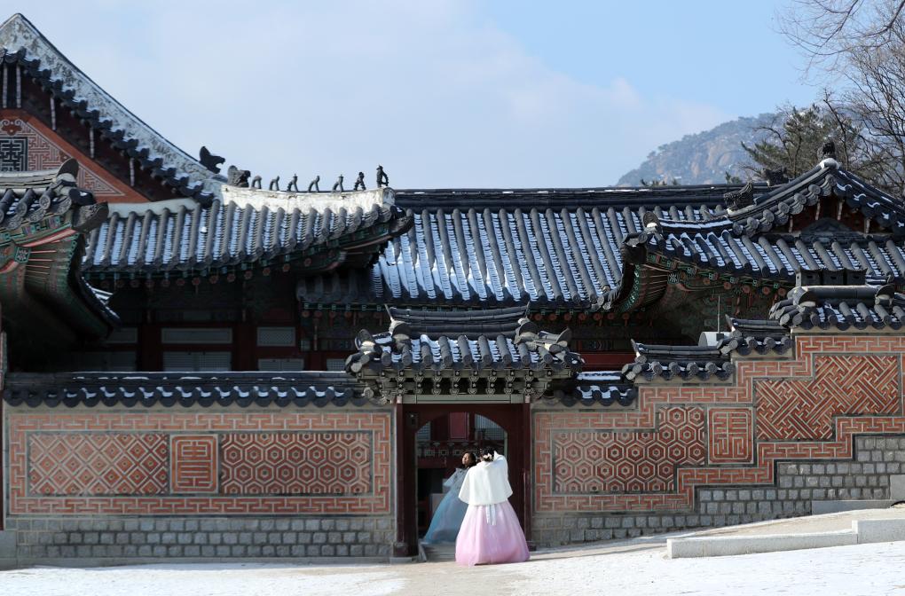 2023年12月20日,游客在韩国首尔景福宫游览。新华社记者姚琪琳摄