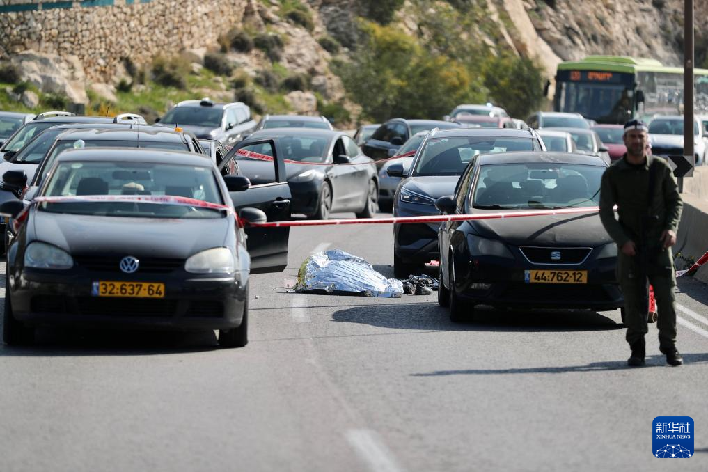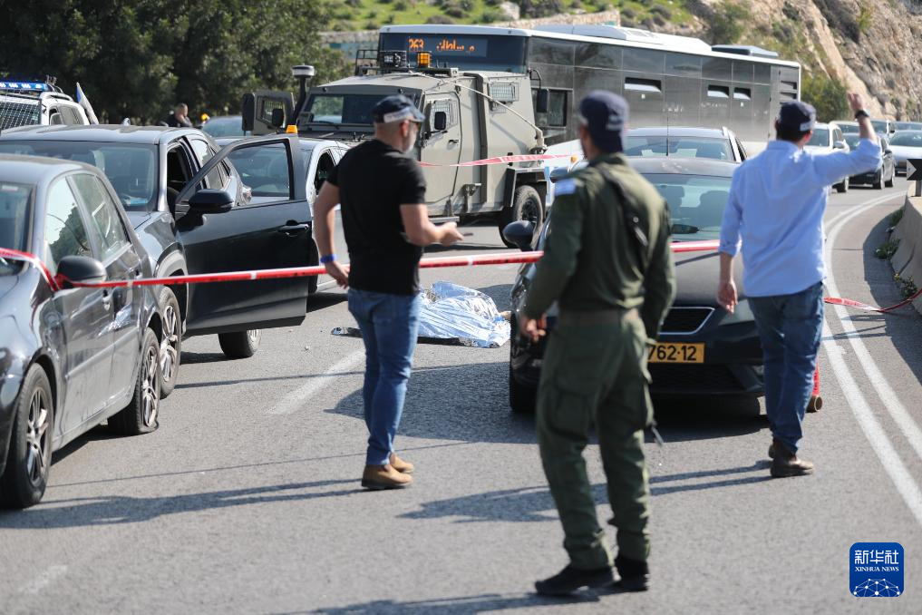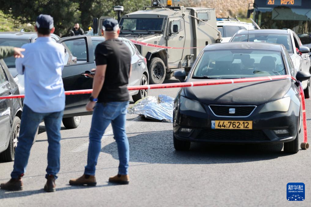 这是2月22日在约旦河西岸犹太人定居点马阿勒阿杜明附近拍摄的枪击事件现场。