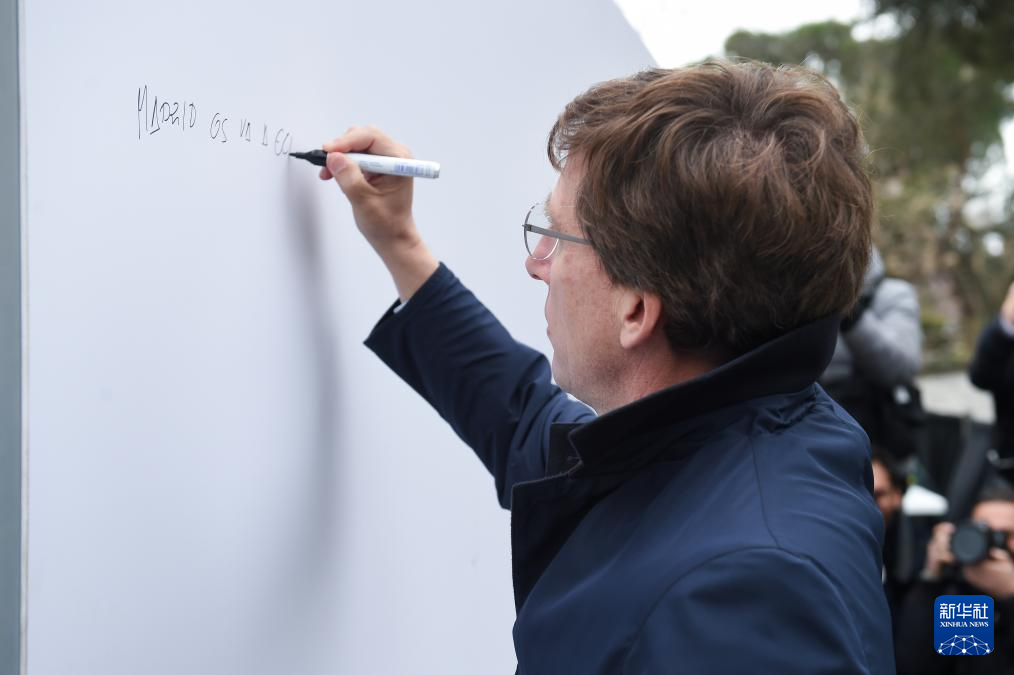 2月22日,在西班牙马德里,马德里市市长马丁内斯-阿尔梅达参加马德里动物园为熊猫一家五口举办的欢送仪式。新华社发(古斯塔沃·巴连特 摄)