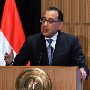 2月23日,埃及总理马德布利在埃及新行政首都举行的签字仪式上讲话。