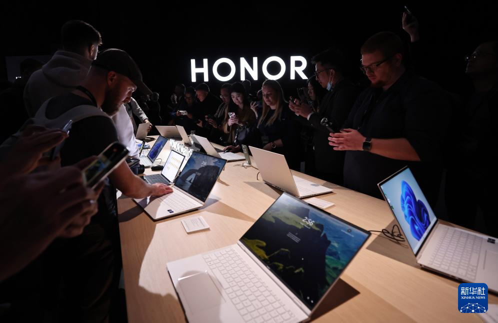 2月25日,在西班牙巴塞罗那举行的荣耀2024全球发布会后,嘉宾体验荣耀新款笔记本电脑。