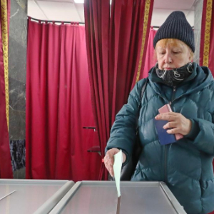 2月25日,选民在白俄罗斯首都明斯克一处投票站投票。