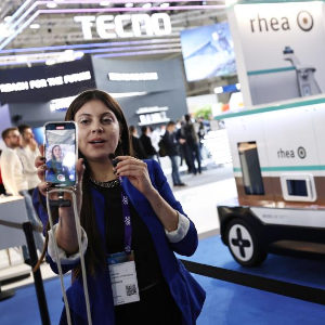 2月28日,人们在西班牙巴塞罗那举行的2024年世界移动通信大会上参观。