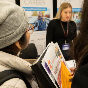 2月29日,求职者在加拿大多伦多举行的招聘会上了解信息。