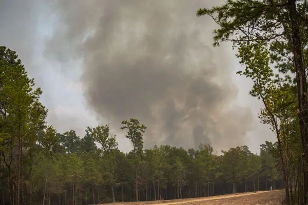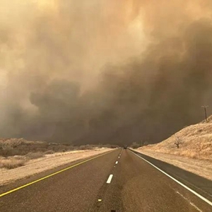 连日来,得克萨斯州北部地区野火延烧,多个城镇要求居民疏散,多条公路关闭。(得克萨斯农工大学林业局供图)
