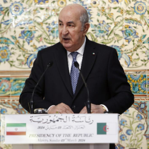 3月3日,在阿尔及利亚首都阿尔及尔,阿尔及利亚总统特本出席联合记者会。