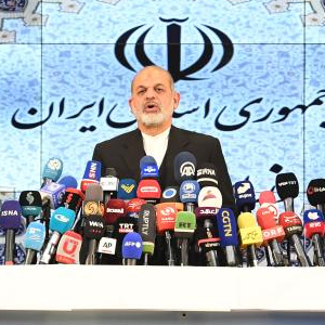 3月4日,伊朗内政部长瓦希迪在德黑兰出席新闻发布会。新华社记者 沙达提 摄