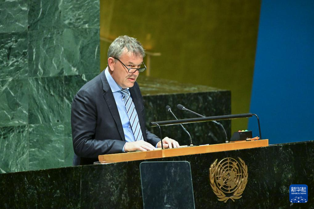 3月4日,在位于纽约的联合国总部,联合国近东巴勒斯坦难民救济和工程处(近东救济工程处)主任专员菲利普·拉扎里尼在联合国大会有关近东救济工程处命运前途问题的非正式会议上发言。新华社发(联合国供图/埃万·施奈德摄)