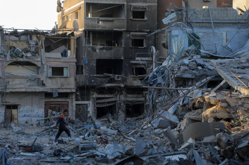 3月6日,在加沙地带南部城市汗尤尼斯,一名男子经过建筑废墟。新华社发(里泽克·阿卜杜勒贾瓦德摄)