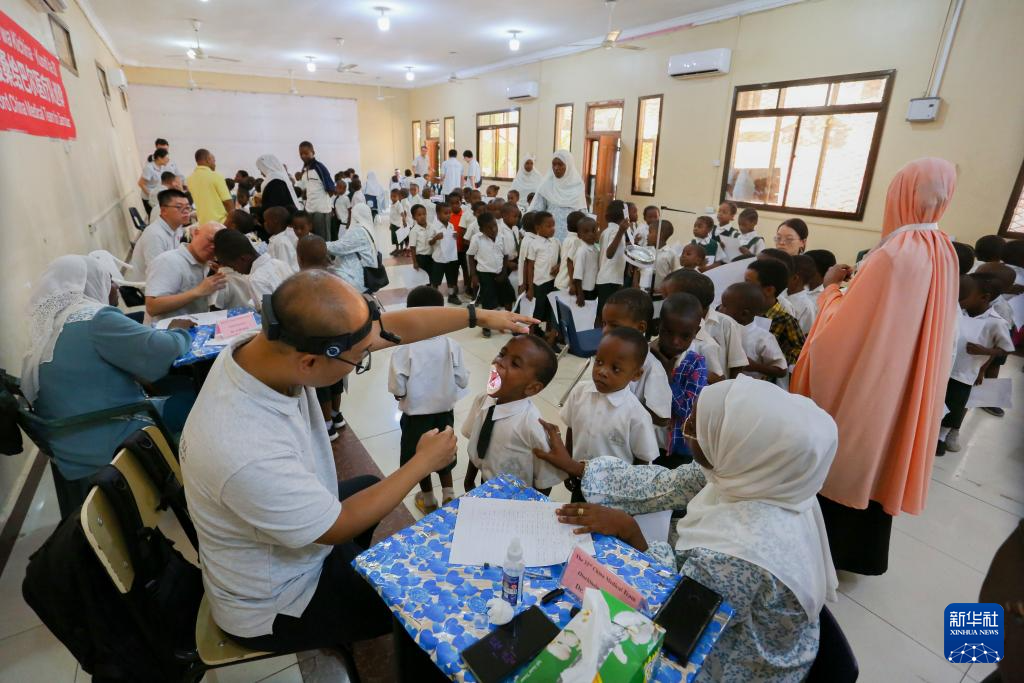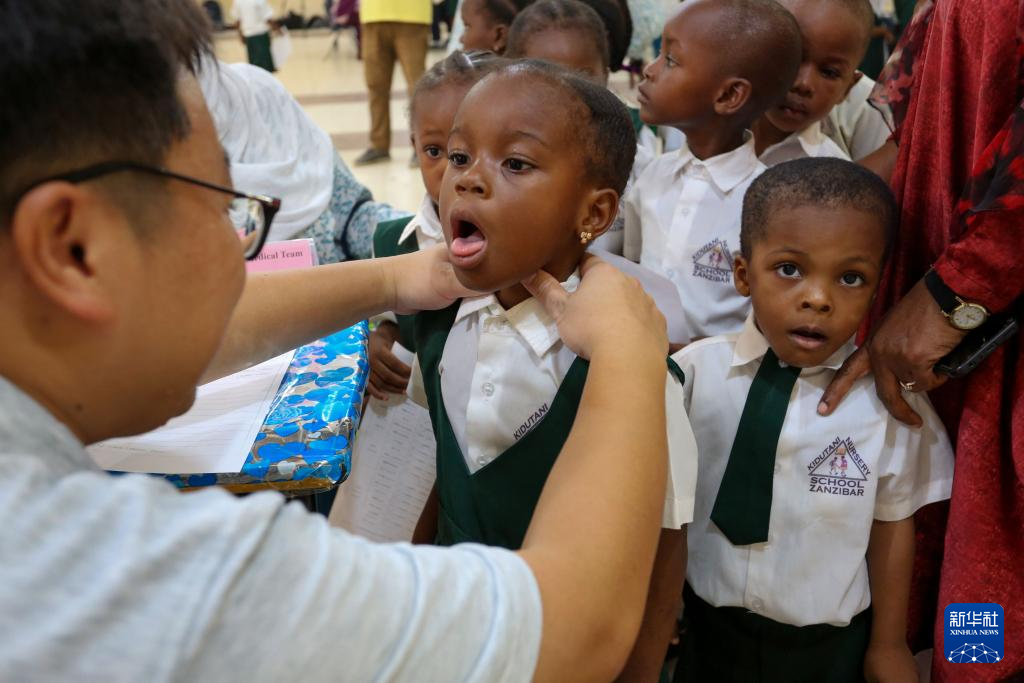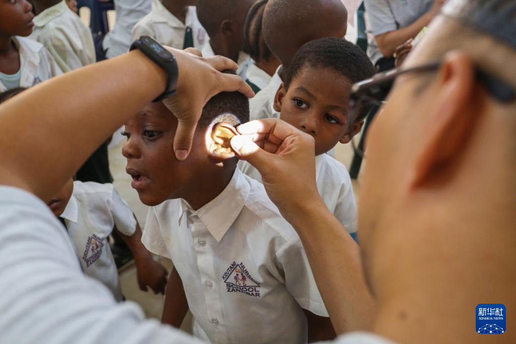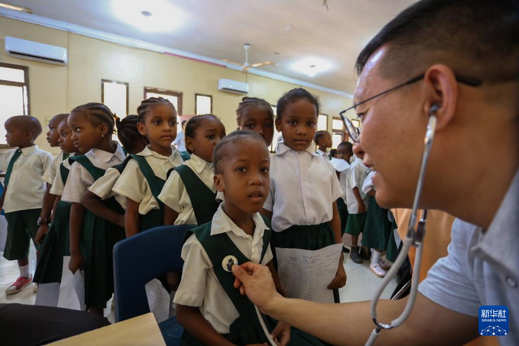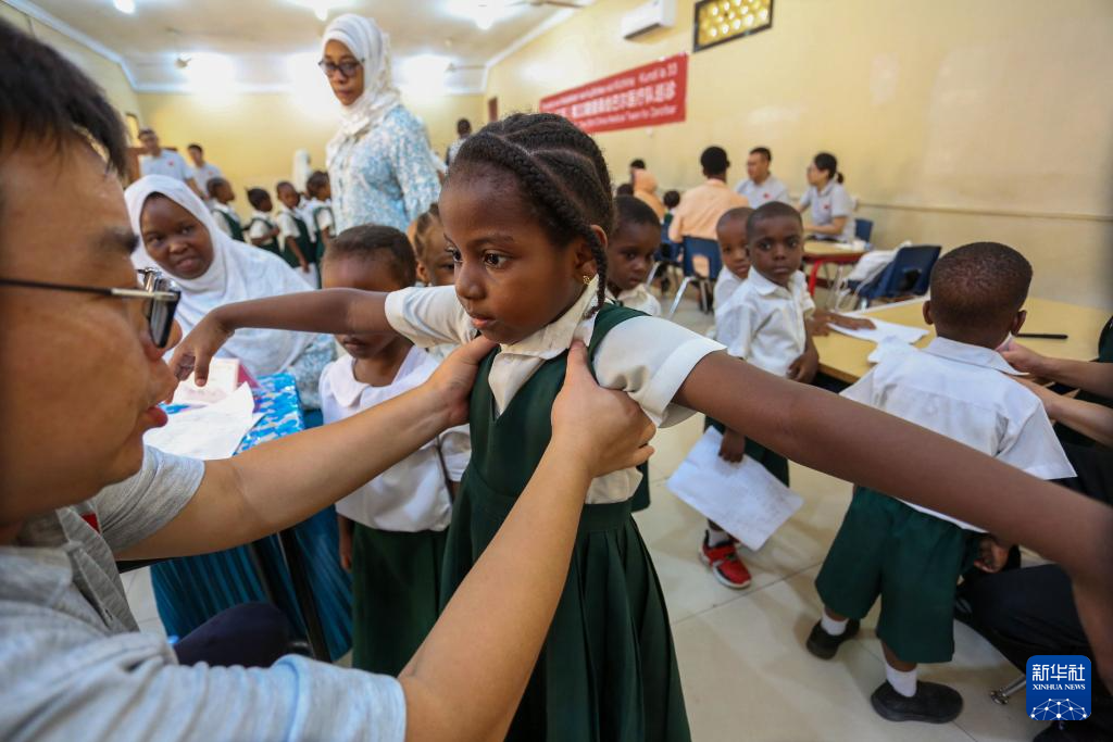 3月6日,第33期中国援桑给巴尔医疗队在坦桑尼亚桑给巴尔一社区幼儿园开展健康义诊活动。