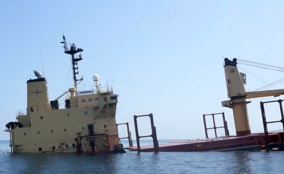 这张拍摄日期不明的照片显示了英国货轮“鲁比马尔”号沉没前的景象。新华社发(也门政府供图)