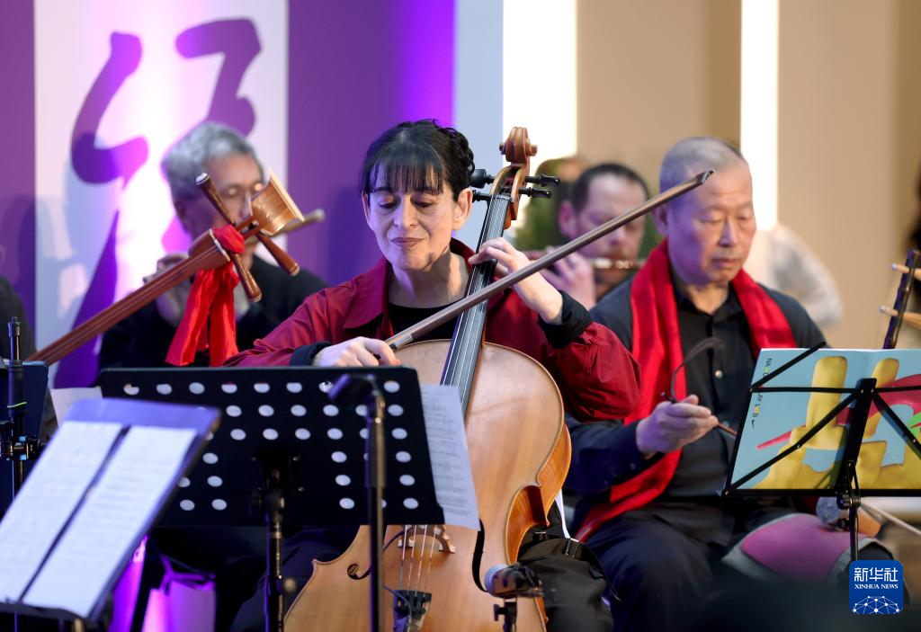 3月9日,在英国伦敦,表演者在颁奖典礼前表演中西乐器合奏。新华社记者 李颖 摄