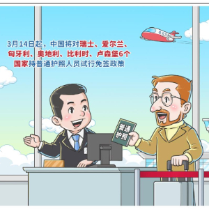 3月14日起,中国将对瑞士、爱尔兰、匈牙利、奥地利、比利时、卢森堡6个国家持普通护照人员试行免签政策。这是继本月1日中泰互免签证协定正式生效后,中国免签“朋友圈”实现再次扩容。
