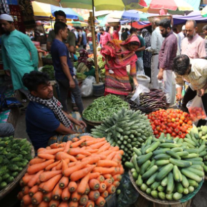 3月11日,人们在孟加拉国首都达卡的一处市场购买食品。