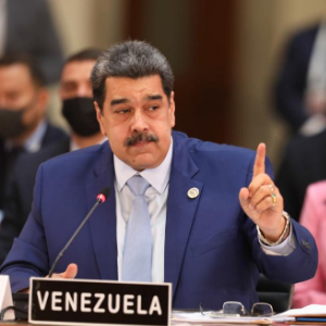 2021年9月18日,在墨西哥首都墨西哥城,委内瑞拉总统马杜罗在第六届拉美和加勒比国家共同体首脑会议上讲话。新华社发