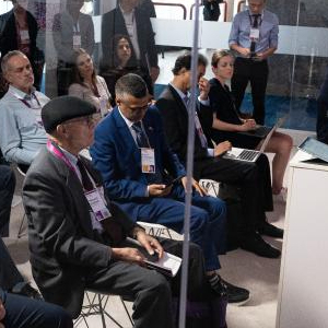 3月18日,与会者在美国休斯敦举行的能源界高端会议“剑桥能源周”的创新集市上参与讨论。
