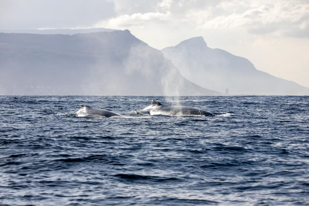2022年6月15日,在南非开普敦,鲸鱼在海中游弋。新华社记者吕天然摄