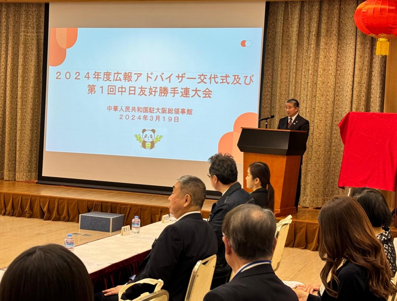 中国驻大阪总领事薛剑在2024年度公共外交顾问换届仪式上指出,树立正确的相互认知是两国关系和平友好发展的基础和前提,也是总领馆成立公共外交顾问团队的初衷。他期待各位顾问积极发挥作用,向日本社会介绍一个真实、立体、多元、鲜活的中国,让中日友好更有群众基础、更加深入人心。