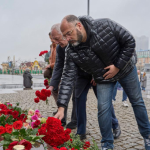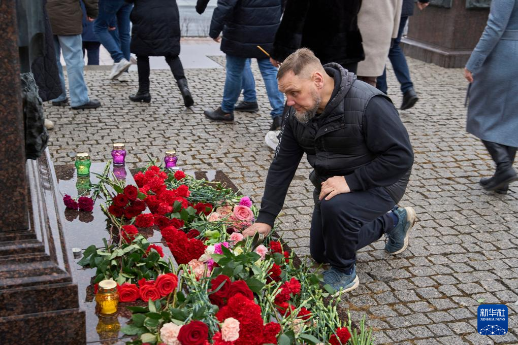 3月23日,俄罗斯符拉迪沃斯托克市举行活动悼念莫斯科近郊恐袭事件遇难者,市长舍斯塔科夫在中心广场献花。