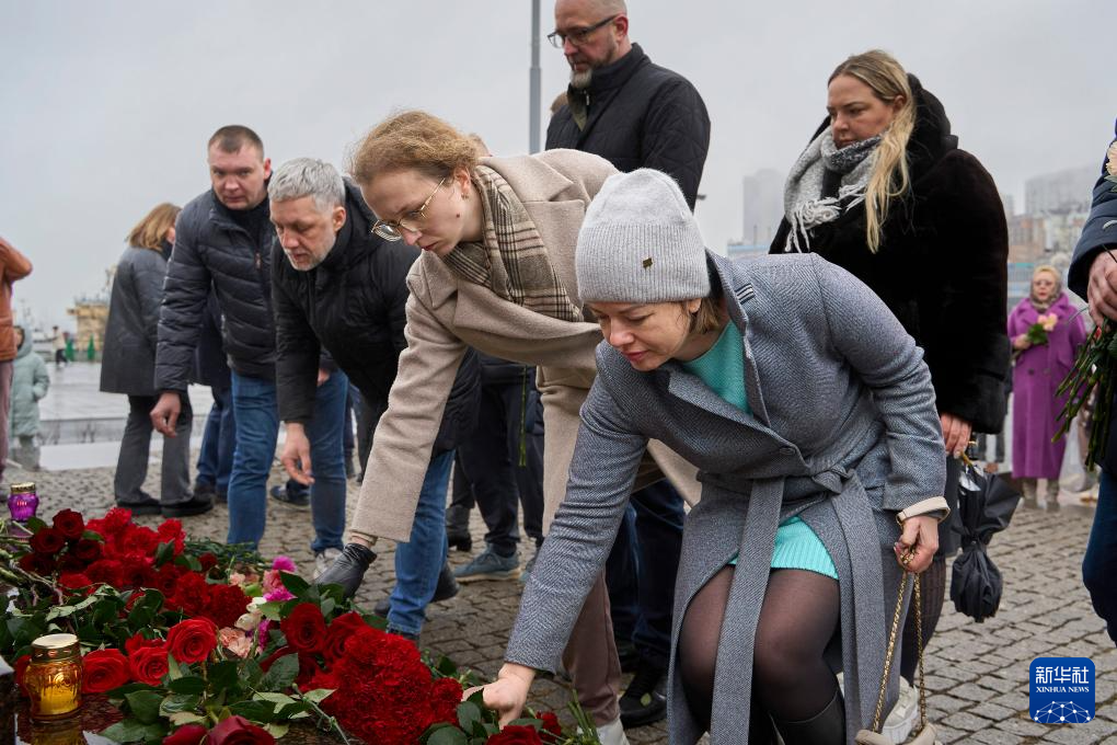 3月23日,俄罗斯符拉迪沃斯托克市举行活动悼念莫斯科近郊恐袭事件遇难者,当地民众在中心广场献花。