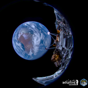 这是美国“直觉机器”公司提供的月球着陆器“奥德修斯”和地球的照片。新华社发(“直觉机器”公司供图)