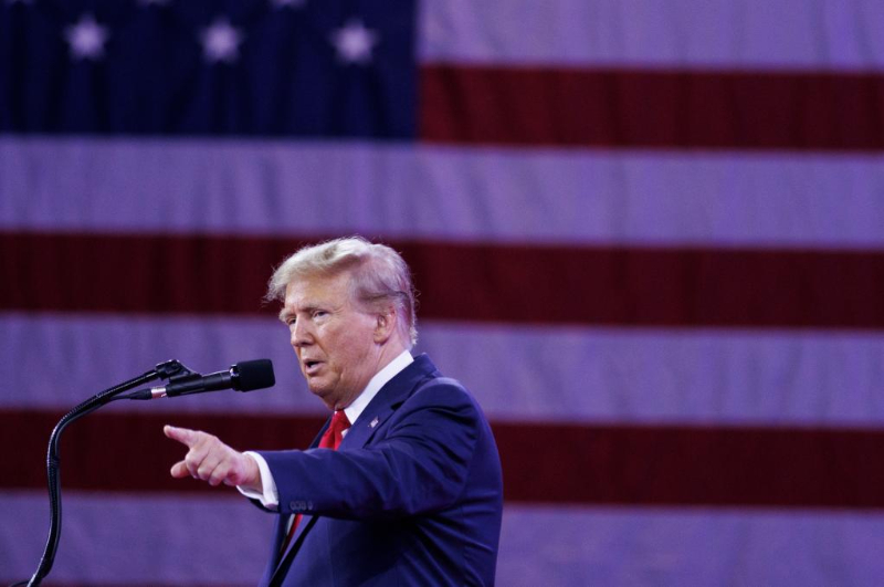 2月24日,在美国马里兰州国家港湾,美国前总统特朗普在保守派政治行动会议上讲话。新华社发(亚伦摄)