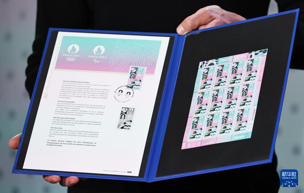 新华社巴黎3月26日电(记者肖亚卓)26日,巴黎奥运会及残奥会官方邮票在法国邮政博物馆正式发布。该邮票设计灵感取自巴黎奥运会视觉标识,采用烫金工艺的精美装饰,并融入巴黎标志性景点埃菲尔铁塔及塞纳河的形象。