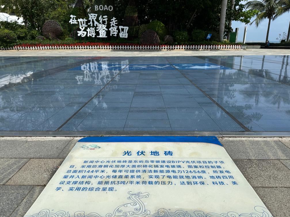 博鳌亚洲论坛新闻中心旁铺设的光伏地砖。新华社记者陈凯姿 摄