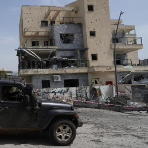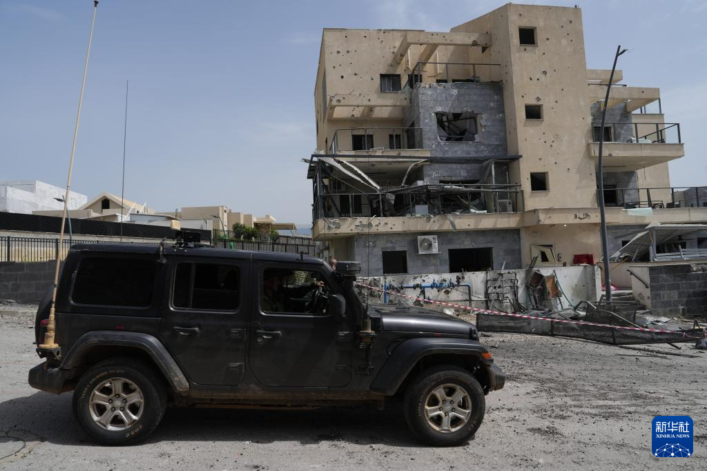 这是3月27日在以色列北部城市谢莫纳拍摄的一处遭火箭弹袭击的建筑。