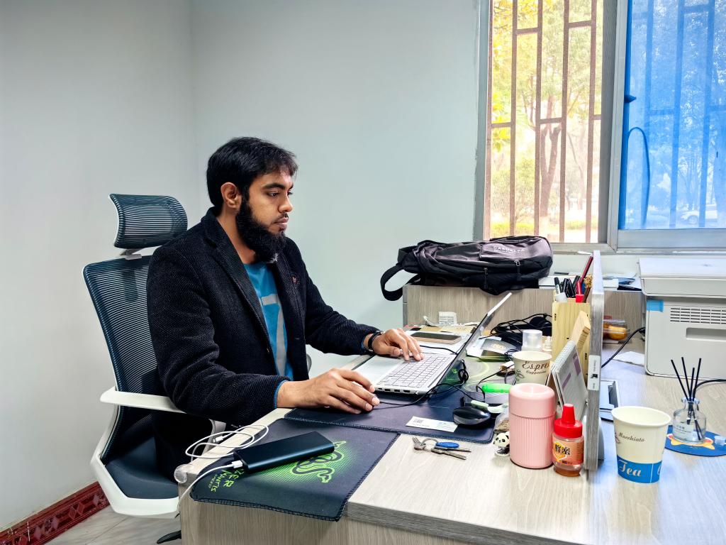 忙碌于春耕的人群之中,有一位肤色偏黑、留着络腮胡的外国小伙。行走于田地之间,俯身细细察看土壤的厚度、松软和干湿度,他用不太流利的汉语和农机手交流。他是来自巴基斯坦的农学博士穆麦森。春天来了,他新一年的农业实验也开启了。