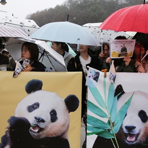 3日上午8时,离位于韩国京畿道龙仁市的爱宝乐园开门还有近2个小时,不少游客已经在雨中排起长队,准备参加一场特殊的送别仪式。当天上午,被亲切称呼为“福公主”的旅韩大熊猫“福宝”从这里出发,踏上回国旅程。