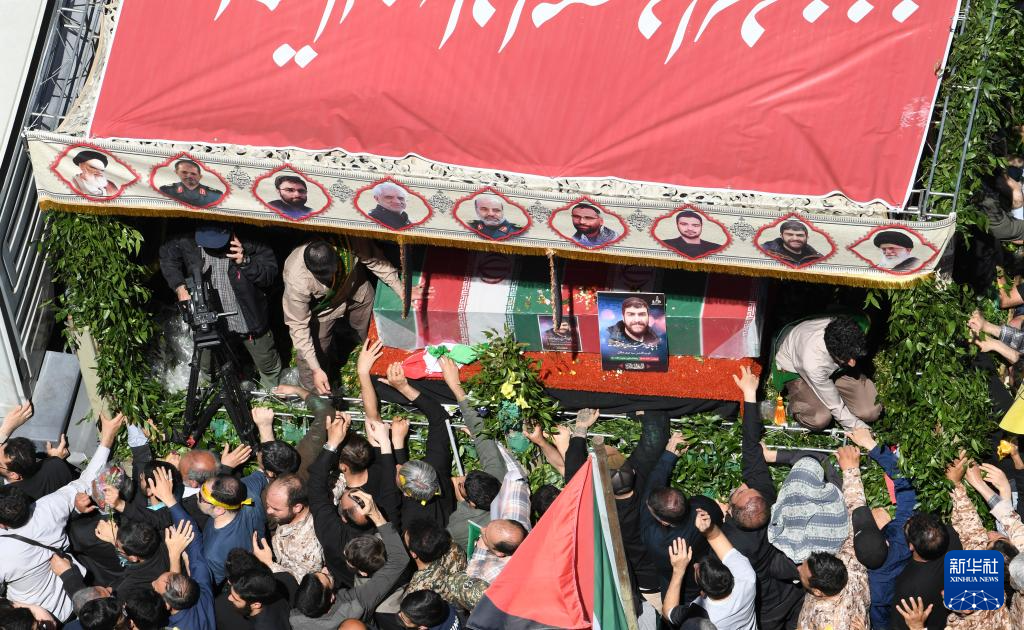 4月5日,在伊朗德黑兰,人们参加伊朗驻叙使馆遭袭事件中丧生的7名伊朗伊斯兰革命卫队成员的葬礼。新华社记者 沙达提 摄