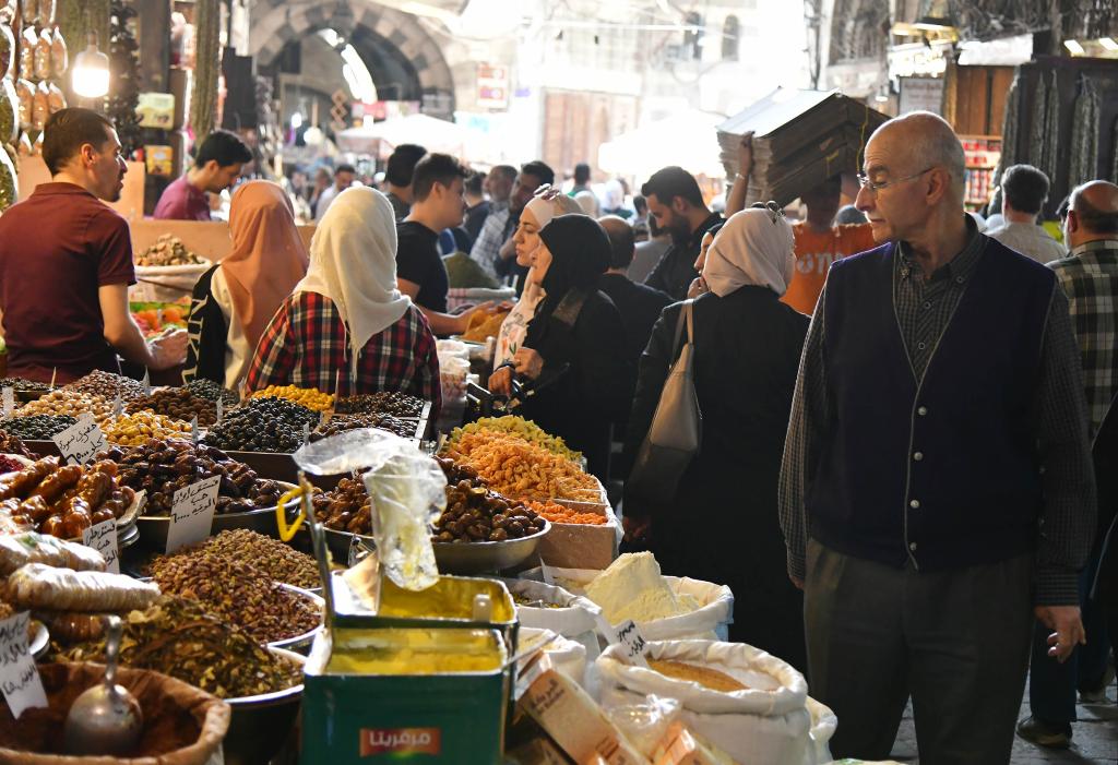 4月4日,在叙利亚首都大马士革,人们在市场采购食品为开斋节做准备。(阿玛尔摄)