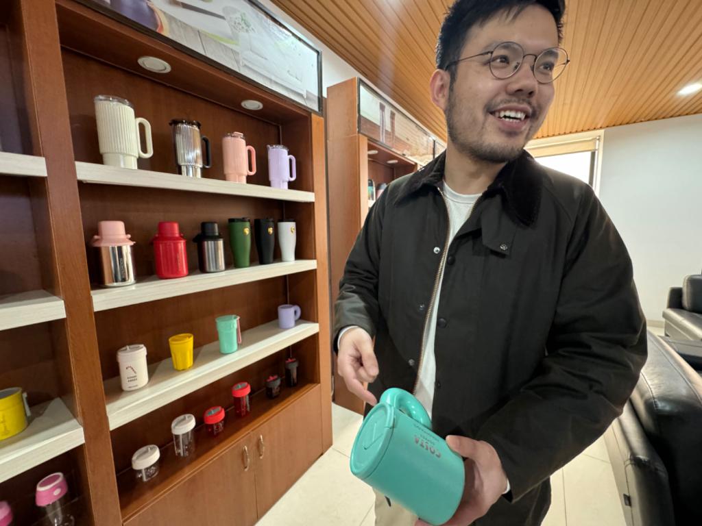 王博文展示自家的保温杯。新华社记者周琳 摄