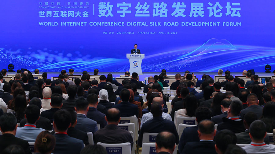 4月16日,世界互联网大会数字丝路发展论坛在西安举行,论坛上发布了《世界互联网大会跨境电商实践案例集(2024年)》。新华网 杨喜龙 摄