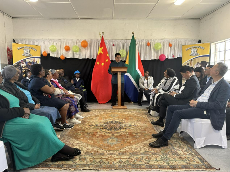 中国驻开普敦总领事尤文泽、副总领事汤长安和总领馆部分领事人员当天来到位于开普敦市古古莱图的西维韦技术学校,向该校师生移交中国驻南非大使馆捐赠的电脑、打印机、投影仪、音响系统等教学用品。