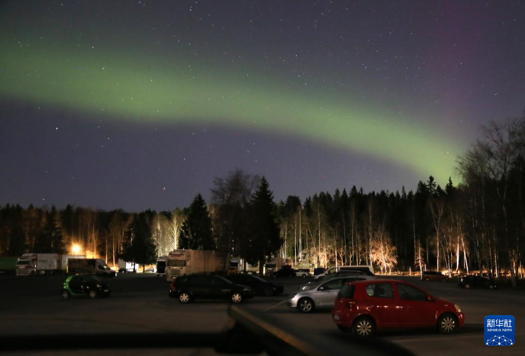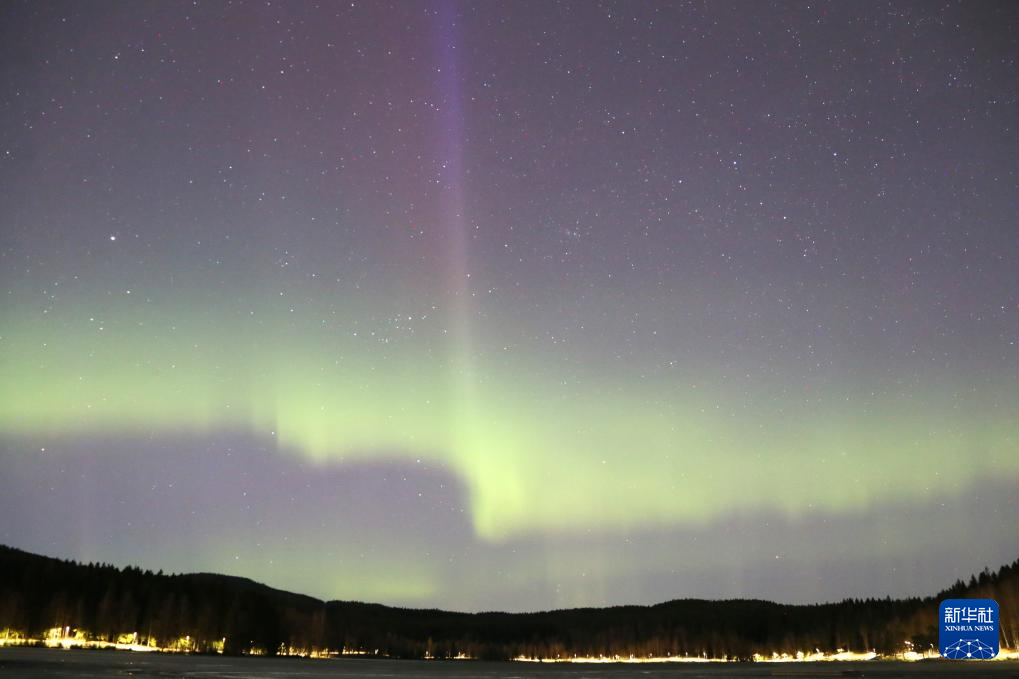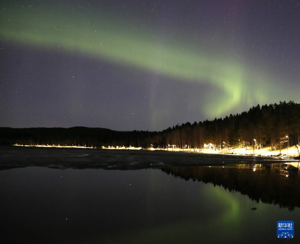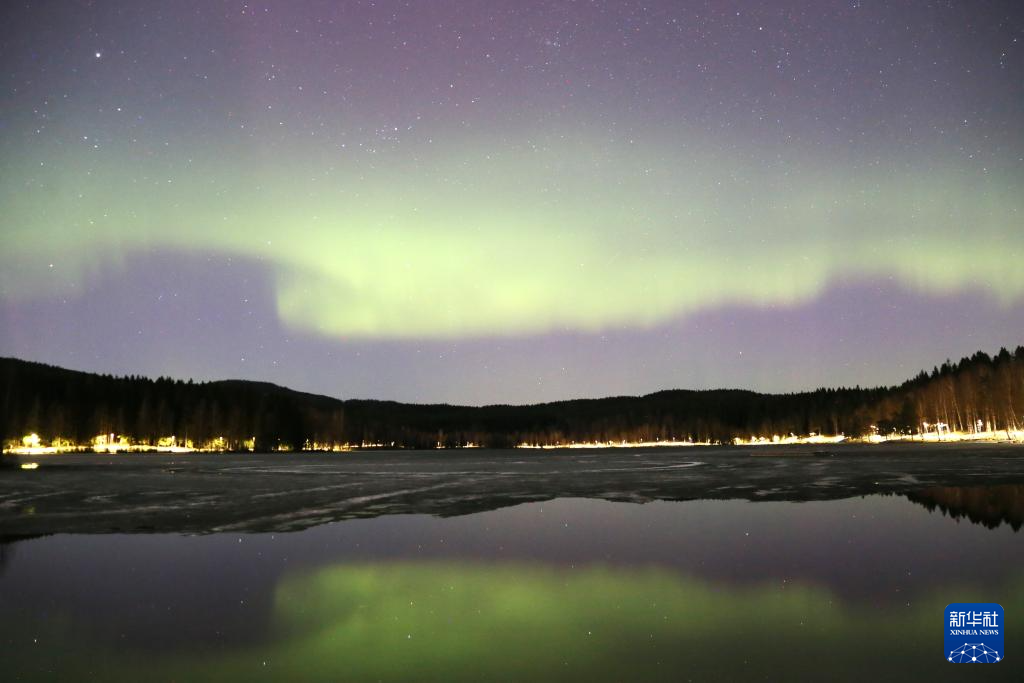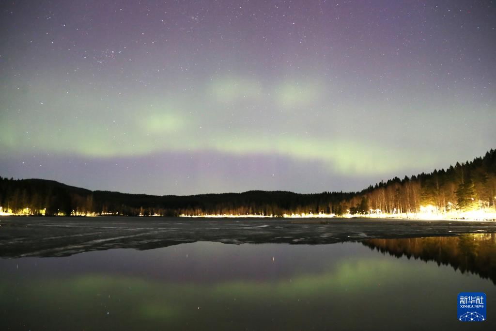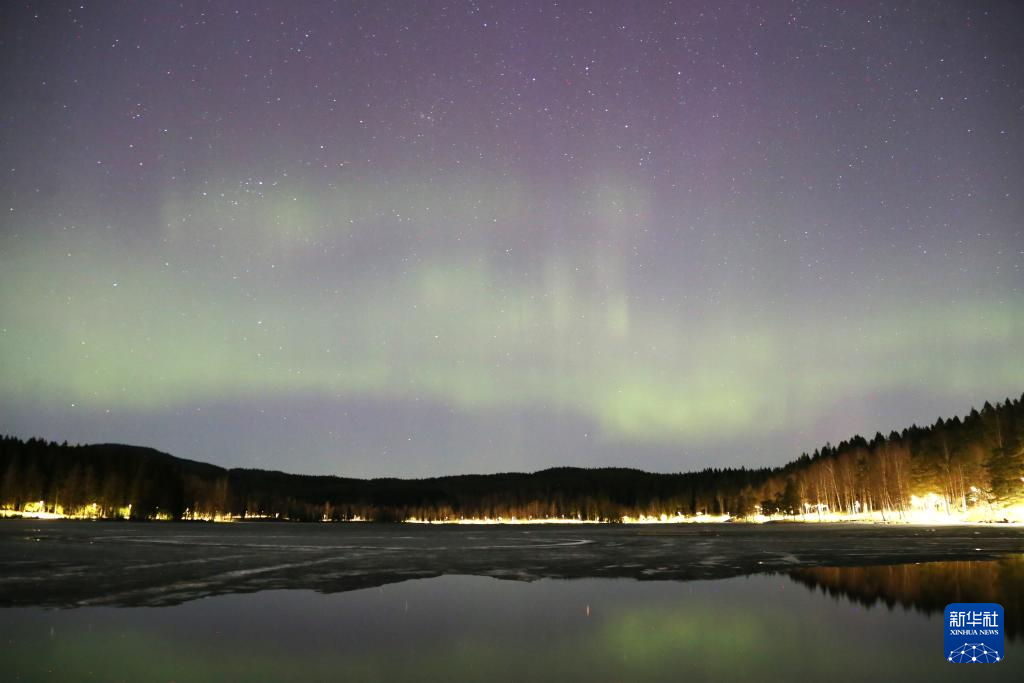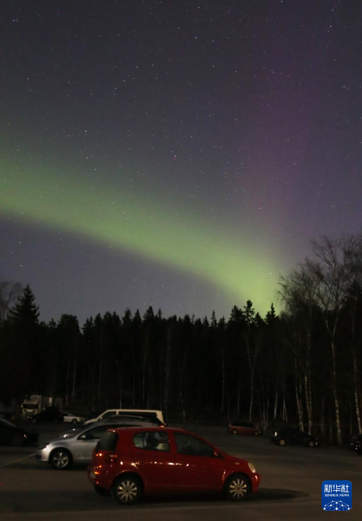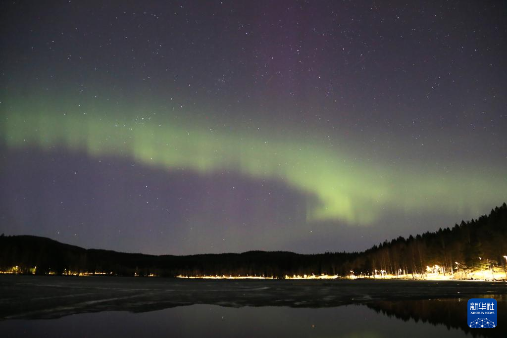 这是4月17日在挪威首都奥斯陆松恩湖拍摄的北极光。