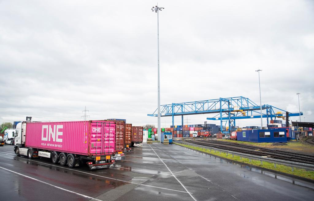 这是3月28日在德国杜伊斯堡拍摄的一处货运场站。