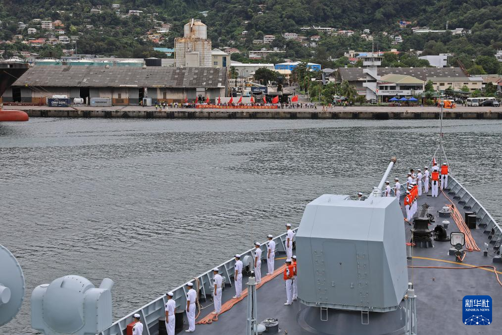 4月18日,中国海军第45批护航编队抵达塞舌尔维多利亚港。新华社发(王远方摄)
