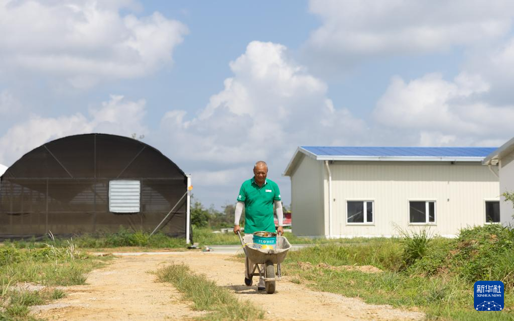 4月3日,在位于苏里南萨拉马卡区的中国援苏里南农业技术合作中心,农业专家准备前往大棚授课。