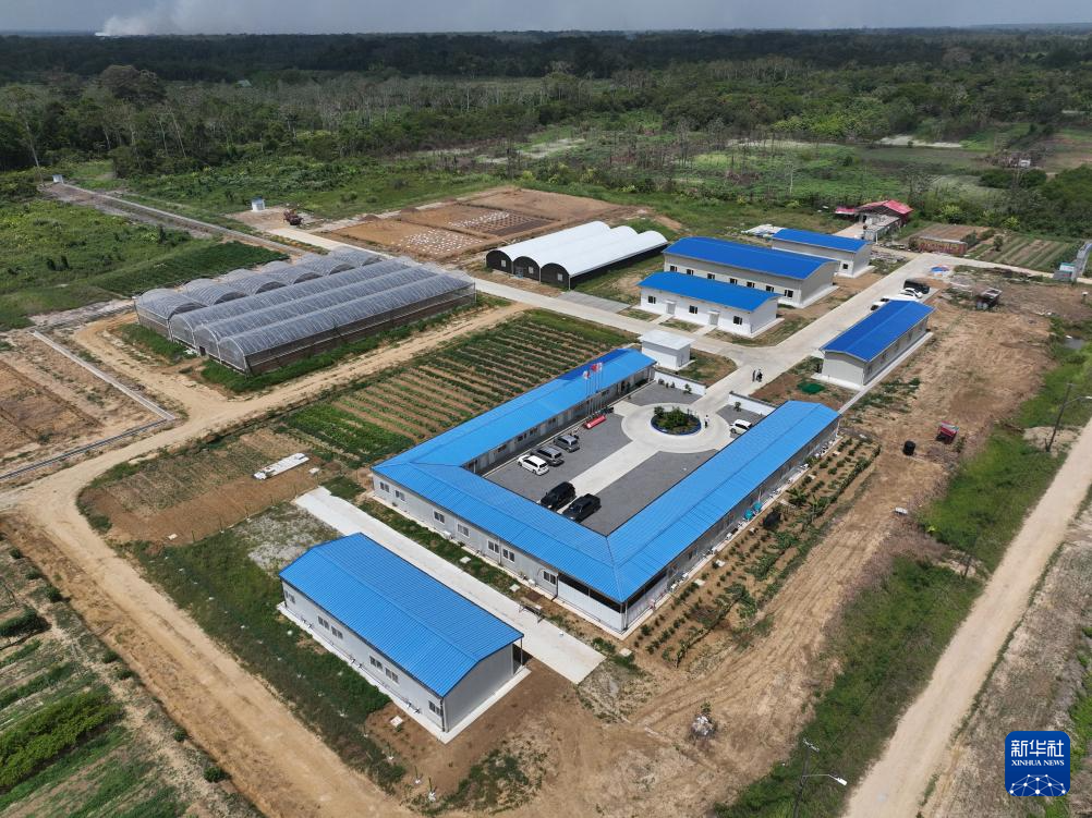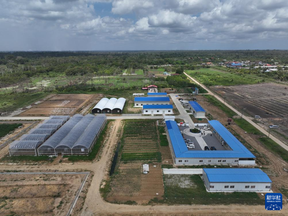 这是4月3日在苏里南萨拉马卡区拍摄的中国援苏里南农业技术合作中心(无人机照片)。