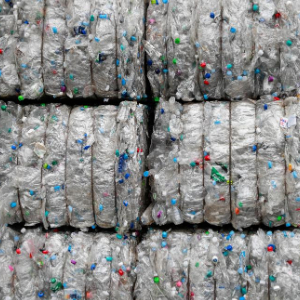 2021年5月27日,堆放在韩国江原道横城郡的一个塑料垃圾处理厂内的废弃PET塑料瓶。 新华社记者 王婧嫱 摄