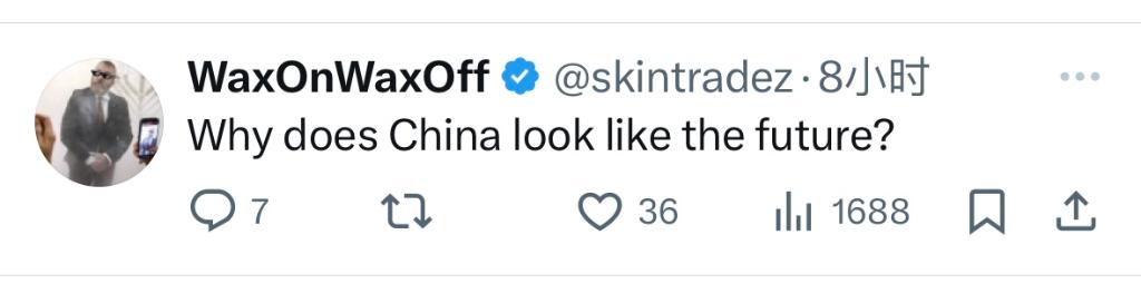 有网友留言说:“背景不错”;“天际线很棒”;“为什么中国看上去像是未来?”