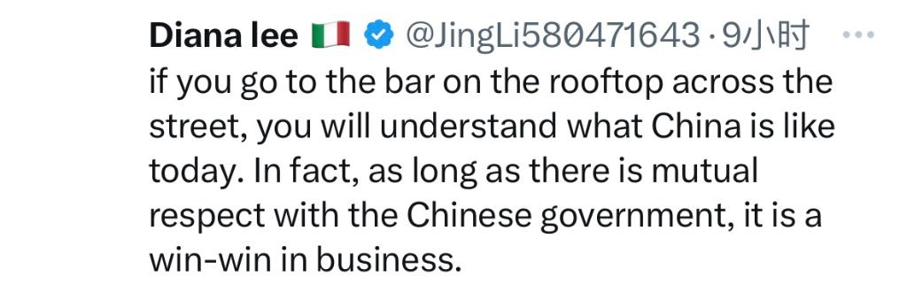 还有网友建议布林肯到街对面的楼顶,这样他可以面对视频背景里的浦东全貌,“了解一下现在的中国是什么样的”。这位网友还告诉美国国务卿,其实只要与中国相互尊重,就会收获共赢。