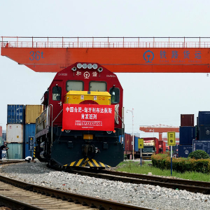 2022年7月29日,合肥至匈牙利布达佩斯的中欧班列从合肥北站物流基地驶出,标志着合肥中欧班列通往匈牙利布达佩斯的线路正式开通。新华社发(席静玉摄)