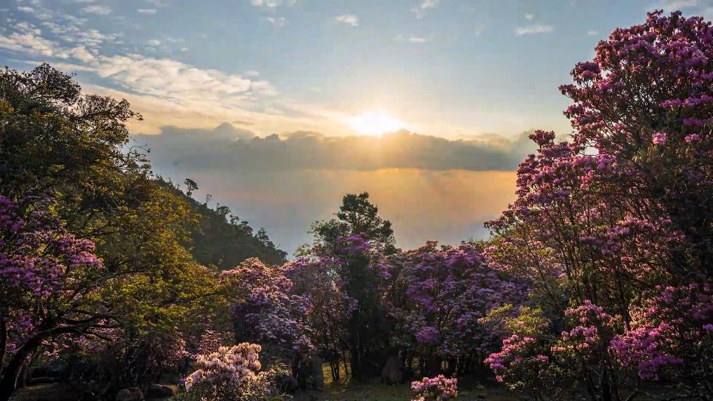 “五一”假期,云南省大理白族自治州洱源县马耳山高山杜鹃花竞相绽放,绵延十几公里,吸引不少游客。
