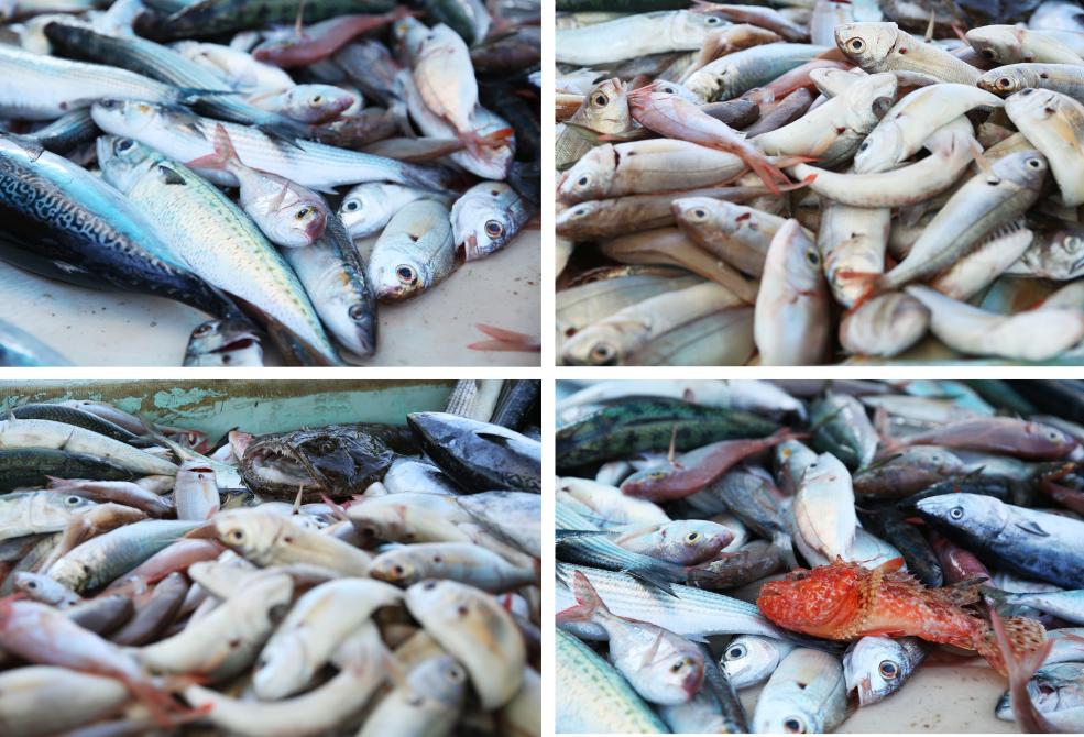 拼版照片显示的是在法国马赛老港的鱼市上出售的新鲜渔获物。新华社记者高静摄