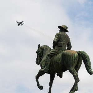 4月27日,在南非行政首都比勒陀利亚,一架军机参加自由日庆祝典礼。