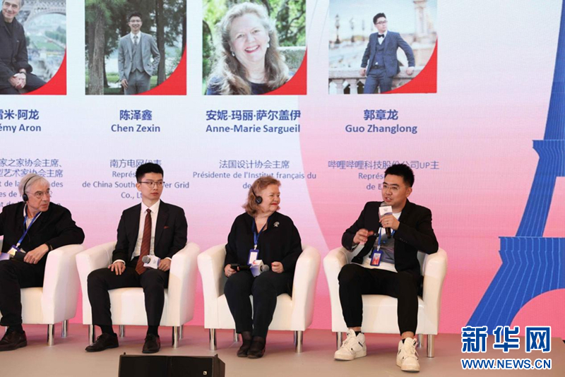 5月4日,来自B站UP主“巴黎小郭郭”(郭章龙)(右一)中法人文合作发展论坛上参加沙龙交流。中法人文合作发展论坛当日在法国巴黎举行,年轻网红也被邀请参与论坛发言,为大会带来新鲜有趣的话题。辛北 摄
